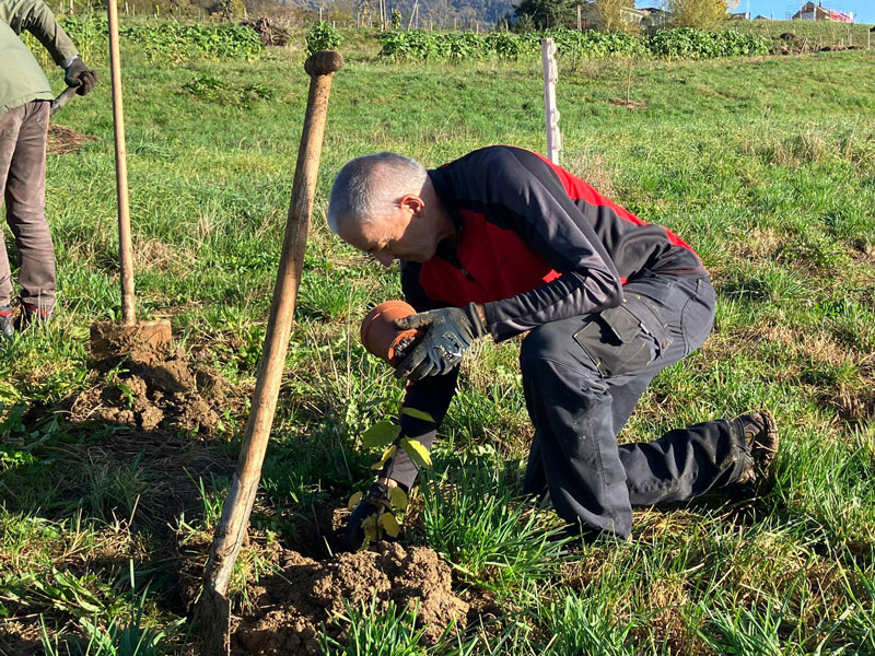 Auf dem Programm stehen viele spannende Arbeiten. Wir werden die Kopfweiden und Brombeersträucher in der Hecke schneiden und einige selbst gezogene Baum – und Obstsämlingsetzlinge in die Hecke pflanzen. Auch werden wir einige junge Kastanien als Selva pflanzen, ebenso wie weitere (Obst-)Bäume aus unserer eigenen Baumschule und von Food for souls in Bern (www.foodforsouls.ch). Und wenn bei alle dem noch Zeit bleibt, möchten wir mit euch auch die Jungpflanzen in der Hecke ausmähen und  mulchen. Es gibt viel zu tun und zu lernen!